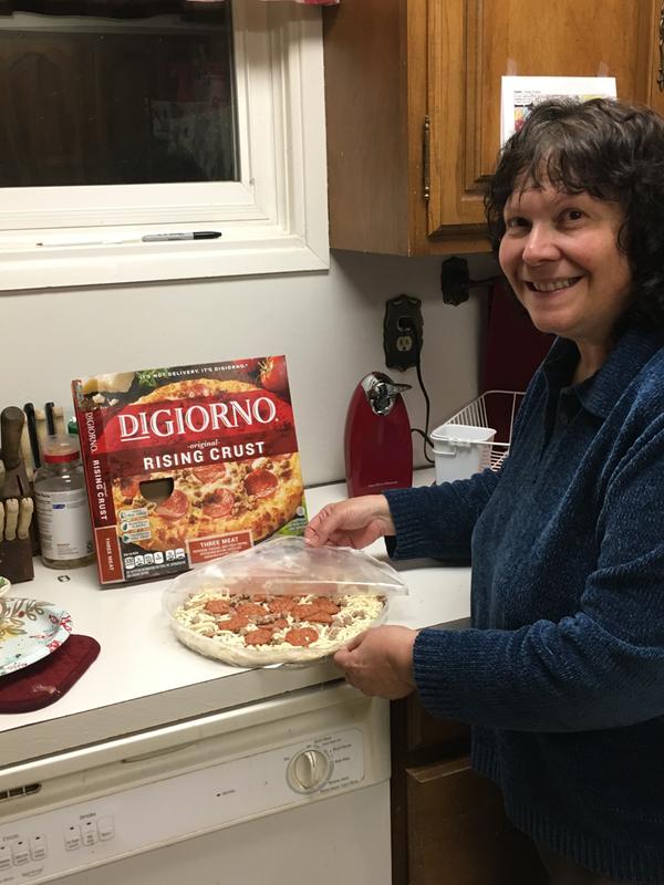 Digiorno microwave rising crust pizza. Preheat and bake at 400 f. Crispy on the outside soft and tender on the inside. California vine ripened tomatoes real mozzarella cheese a preservative free crust and is loaded with big juicy toppings. They put a generous amount of toppings on so that you always get that perfect bite cheese and one if not all three of the meats.